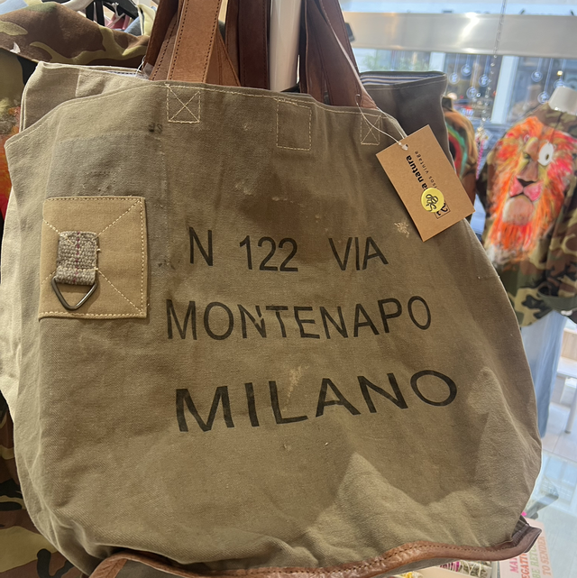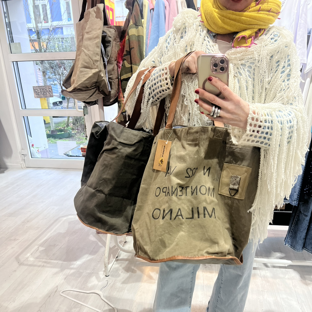 Sie sind einzigartig und aus Canvas oder recycelten indischen Armeezelten hergestellt. Unterschiede in Farben und Schönheitsfehlern im Stoff sind gewollt. Absolut anders, nicht nur als Beachtasche!